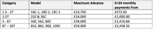 This offer is subject to a maximum advance. A deposit and full VAT amount or VAT difference is payable at the time of signing the Hire Purchase agreement. A documentation fee is payable with the first payment and a £50+VAT option-to-purchase fee will be collected together with the final payment; these amounts are payable on all Hire Purchase agreements. We reserve the right to withdraw the offer at any time. Asset(s) on the agreement may be repossessed if you do not keep up with the repayments.