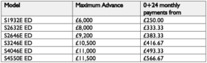 A deposit and full VAT amount or VAT difference is payable at the time of signing the Hire Purchase agreement. A documentation fee is payable with the first payment and a £50+VAT option-to-purchase fee will be collected together with the final payment; these amounts are payable on all Hire Purchase agreements. Asset(s) on the agreement may be repossessed if you do not keep up with the repayments.