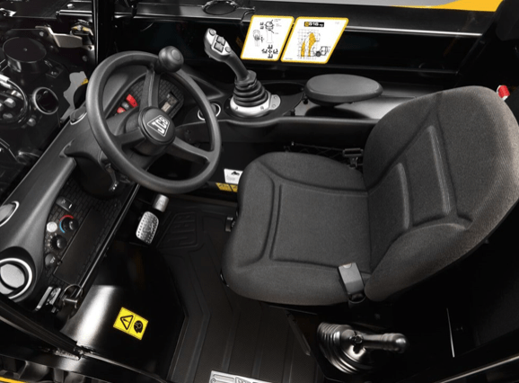 The JCB 520-40 Loadall has a spacious, safe, side-entry cab with superb visibility is superb and a large opening door allows for easy access.  Investment in the compact telescopic handler operator’s comfort is imperative because it equates to real, measurable improvements in day-long productivity.