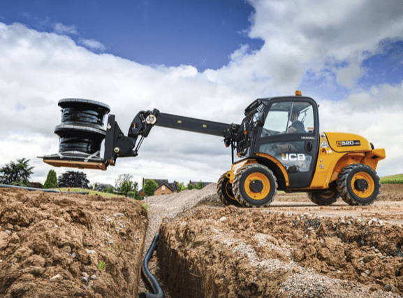The JCB 520-40 is another compact, manoeuvrable Loadall. It has a longer footprint than the 516-40, giving it greater lifting capacity and lift capacity at reach.
