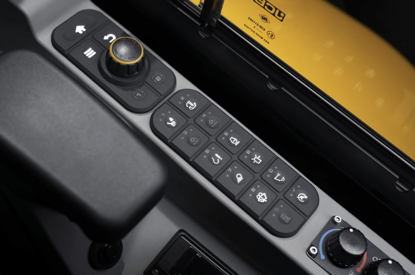 - Complete control panel: LCD colour display with all the information and controls you need. This includes quick attachment change, auxiliary flow alternation, health check management, pin management and optional lift overload LMI system.